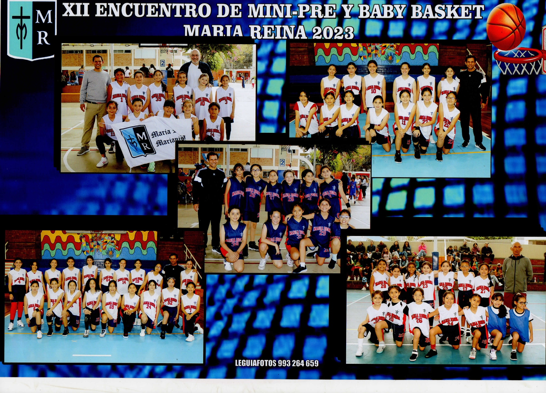 Desde el sábado 02 hasta el domingo 24 de septiembre se realizó el XII Encuentro de Baby, Pre y Mini Básquet María Reina 2023, con la participación de 46 equipos, nuestro colegio participó con 9 equipos de diferentes categorías. Se jugaron 24 partidos en cada una de las 7 fechas planificadas, en las que se observó a los jugadores, entrenadores y padres de familia participar con alegría y entusiasmo.