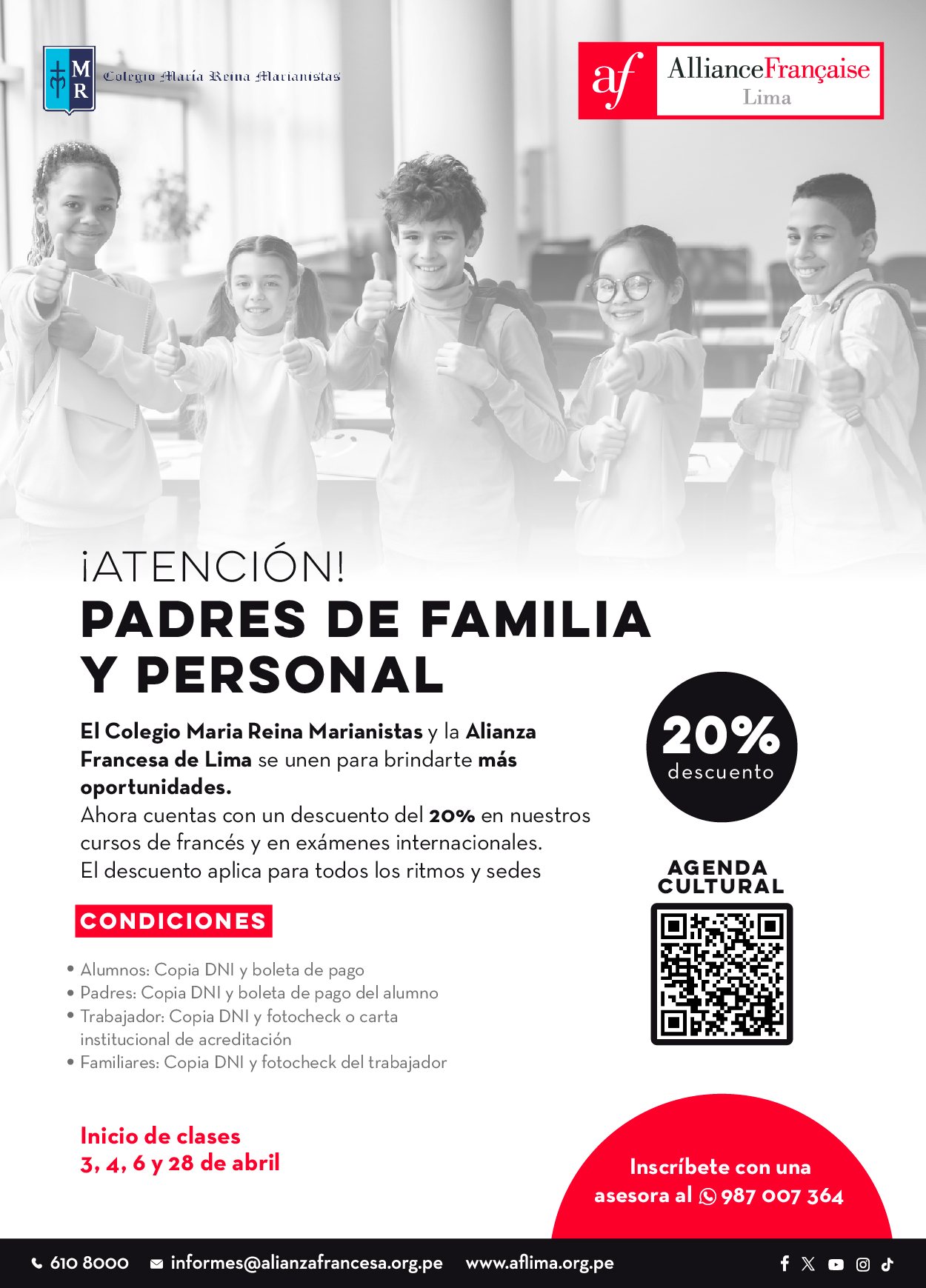 Inicio de clases 3, 4, 6 y 28 de abril. Inscríbete con una asesora al 987 007 364