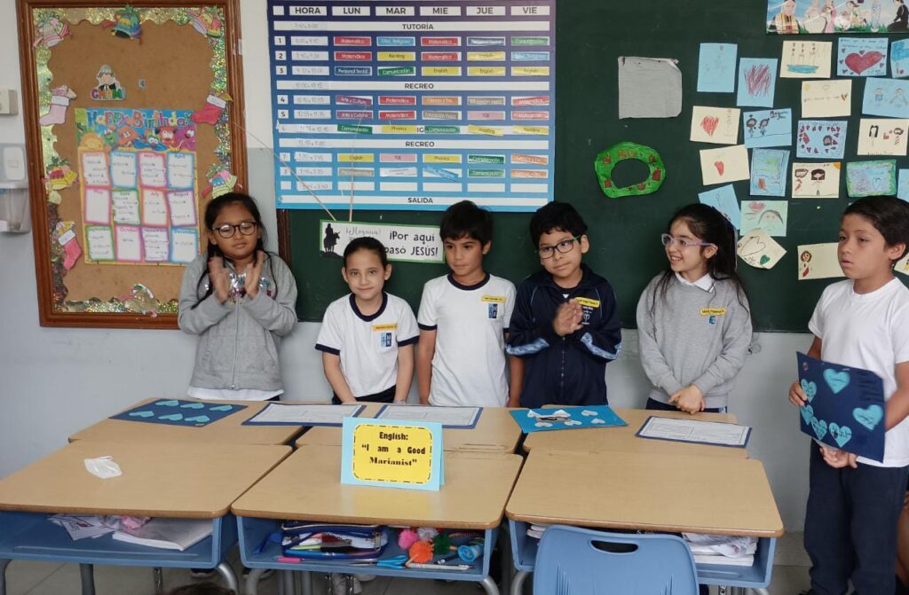 Los niños del segundo grado del nivel Primaria desarrollaron, el tercer trimestre, el proyecto "Soy un buen Marianista y lo demuestro con mis acciones". Los niños realizaron distintas actividades en las áreas de aprendizaje orientadas a fomentar una convivencia pacífica, basada en el respeto, tolerancia, honestidad, escucha y empatía.