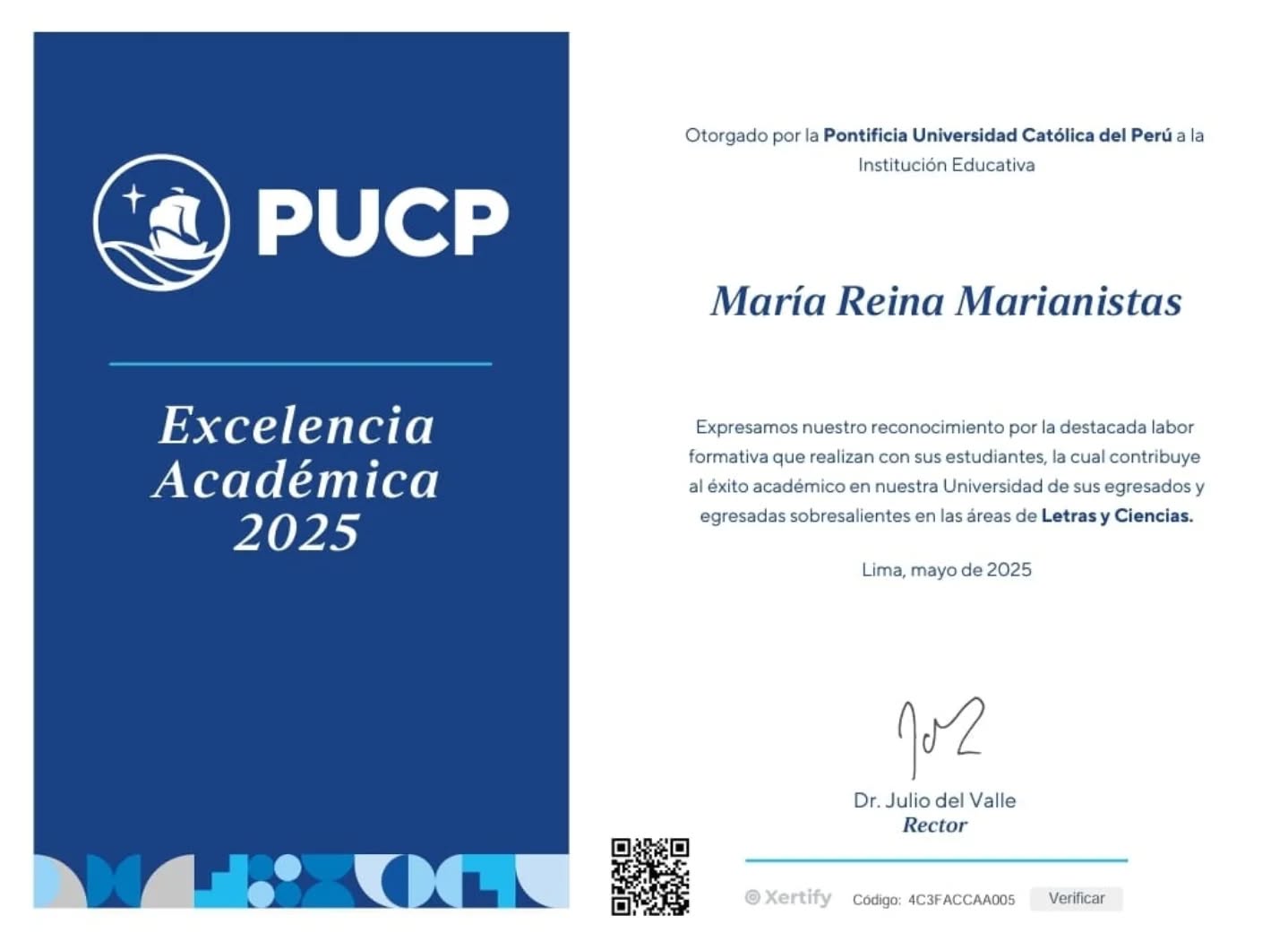 Este reconocimiento es una muestra del valioso trabajo en equipo de toda nuestra comunidad educativa. Lo recibimos con alegría y con el firme compromiso de seguir esforzándonos cada día más.